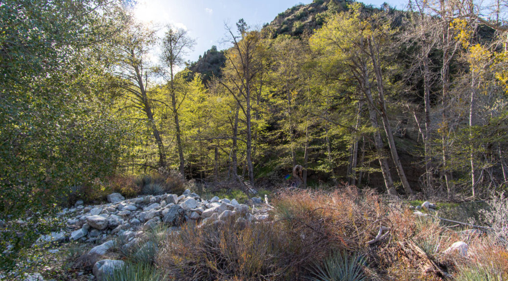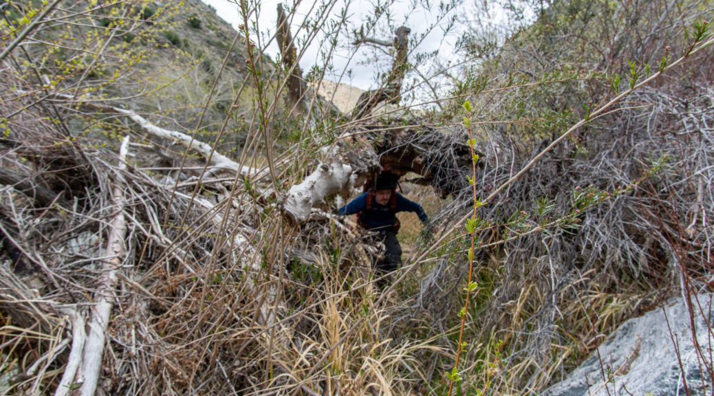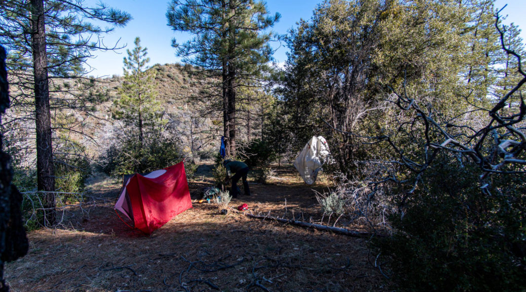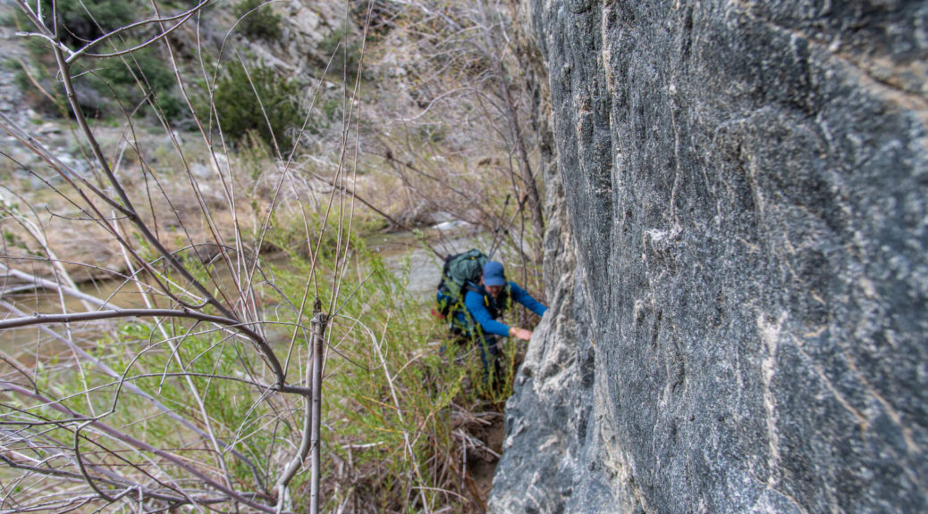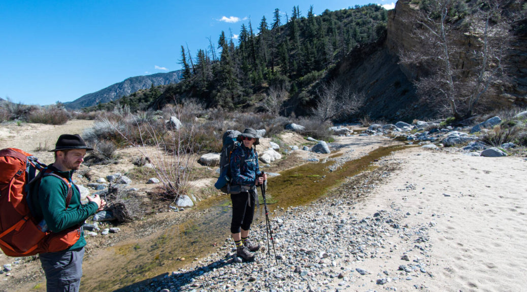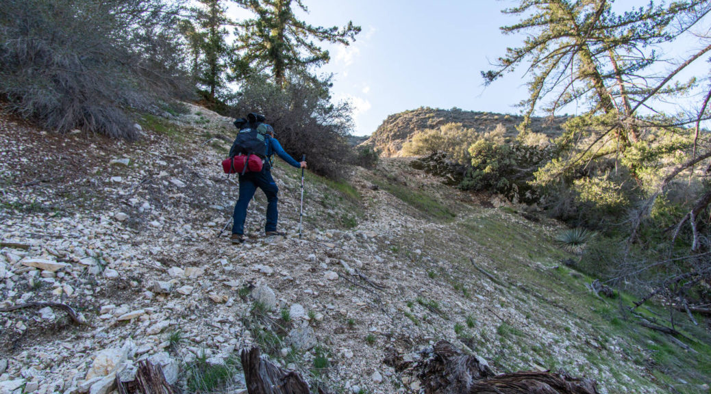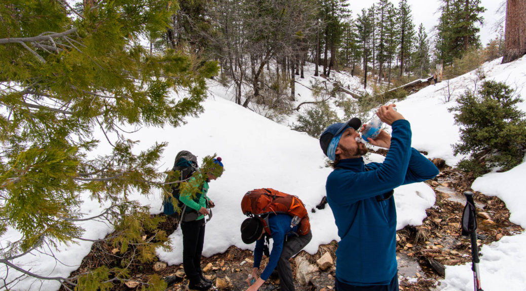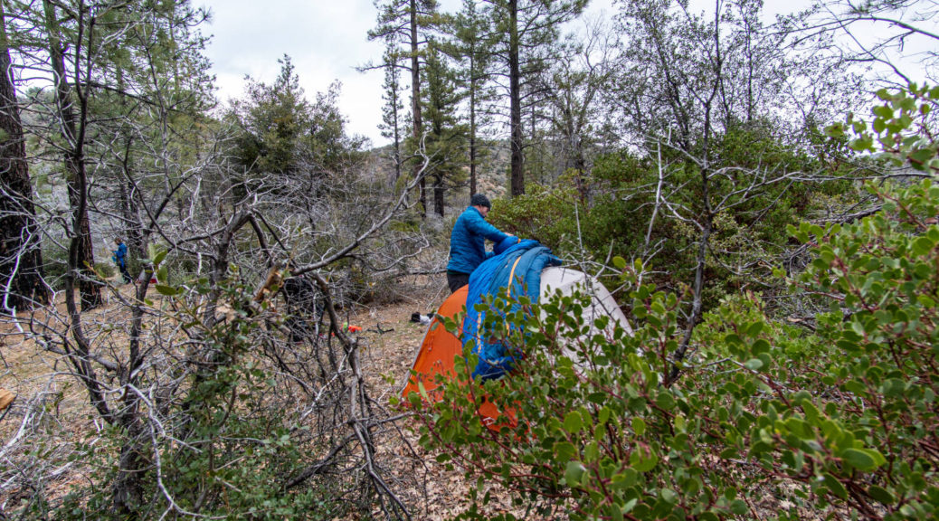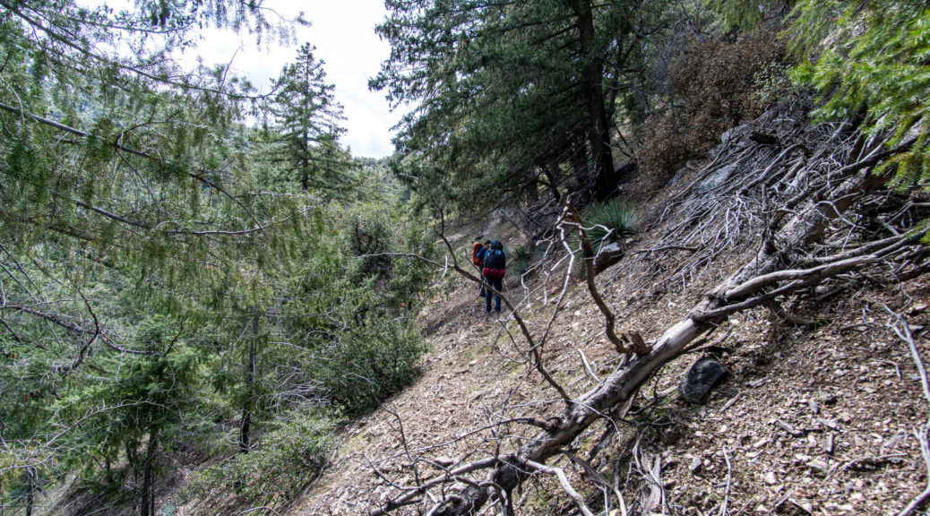 On top of that, this trip had some beautiful variety. We walked on a shut down road, bushwhacked along Buck Creek, climbed up and down on barely visible trails and through snow below Sewart Mountain, descended “canyon-like” Big Cedar Creek, hiked on a beautiful open ridge and finally connected the loop along the riparian environment of Piru Creek.